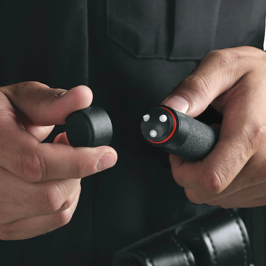 Most window entry tools are not readily available. They are in the patrol car or equipment case at the split second when they are needed. The ASP BreakAway subcap is designed to be interposed between the cap and handle of a Friction Baton. It is always available. It is readily at hand. Removing the baton cap exposes the three ceramic pins of the BreakAway. Set in a machined aluminum geodome, at least one pin will make contact with the tempered glass of a car window whatever the angle of application. The officer can stand to the side of a threat, grasp the tip of the baton and easily shatter any vehicle window. Entry is rapid and tactically sound.
