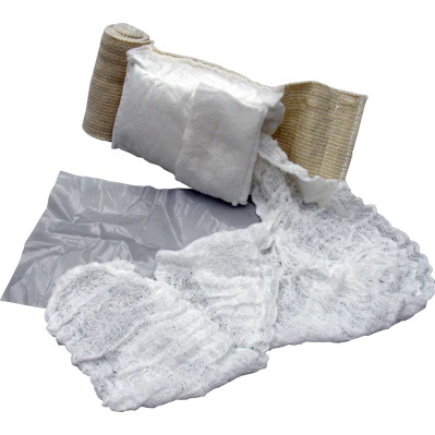 Features: Latex-free Elastic wrap with built-in control strips to prevent accidental unravelling whilst bandaging 3 meters of sterile 4-ply packing gauze Plastic occlusive sheet included in dressing pocket for treatment of small burns or occluding chest injuries Transparent pressure cup that focuses pressure on the wound site and allows for visual inspection of uncontrolled haemorrhage (and doubles as an eye protection cup) High quality heavy elastic bandage The OLAES Modular Bandage is one of the best trauma dressings on the market. Packed with features, the OLAES Trauma Bandage is truly a modular dressing. From its large trauma pad, 3 meters of packing gauze, removable non-occlusive plastic sheet, Velcro brakes and a pressure cup - the OLAES has all the features you need for treating traumatic injuries.